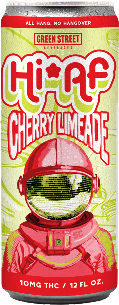 Hi*AF’s tasty Cherry Limeade carbonated beverage tantalizes your tongue with a cherry sweetness and a zing of lime, expertly infused with hemp-derived THC, delivering a cascade of tangy ecstasy, embodying the essence of fun fruitiness with every sip.