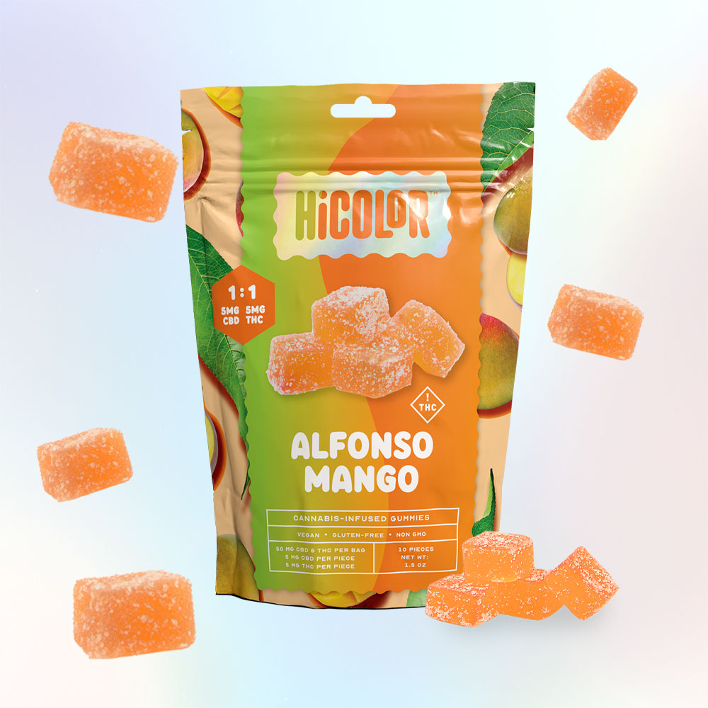 Dive into the luscious taste of Alfonso Mango with HiColor’s precision-dosed THC gummies. Perfect for a tropical getaway, these gummies provide a balanced and uplifting experience.